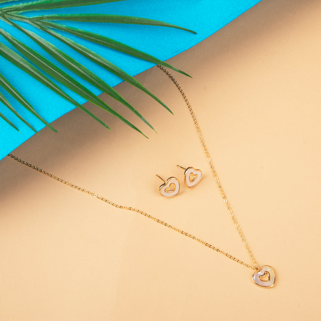 Beautifully crafted heart-shaped pendant and matching earrings, symbolizing affection and timeless connection. Minimal open-heart design...