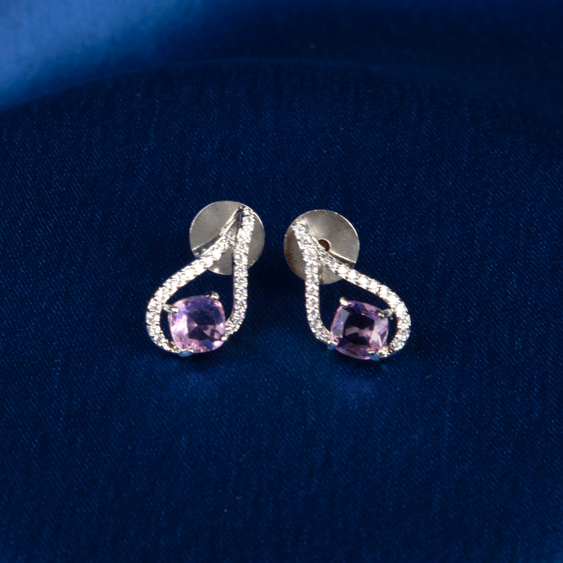 - Delicate teardrop design with a soft peach-hued center stone