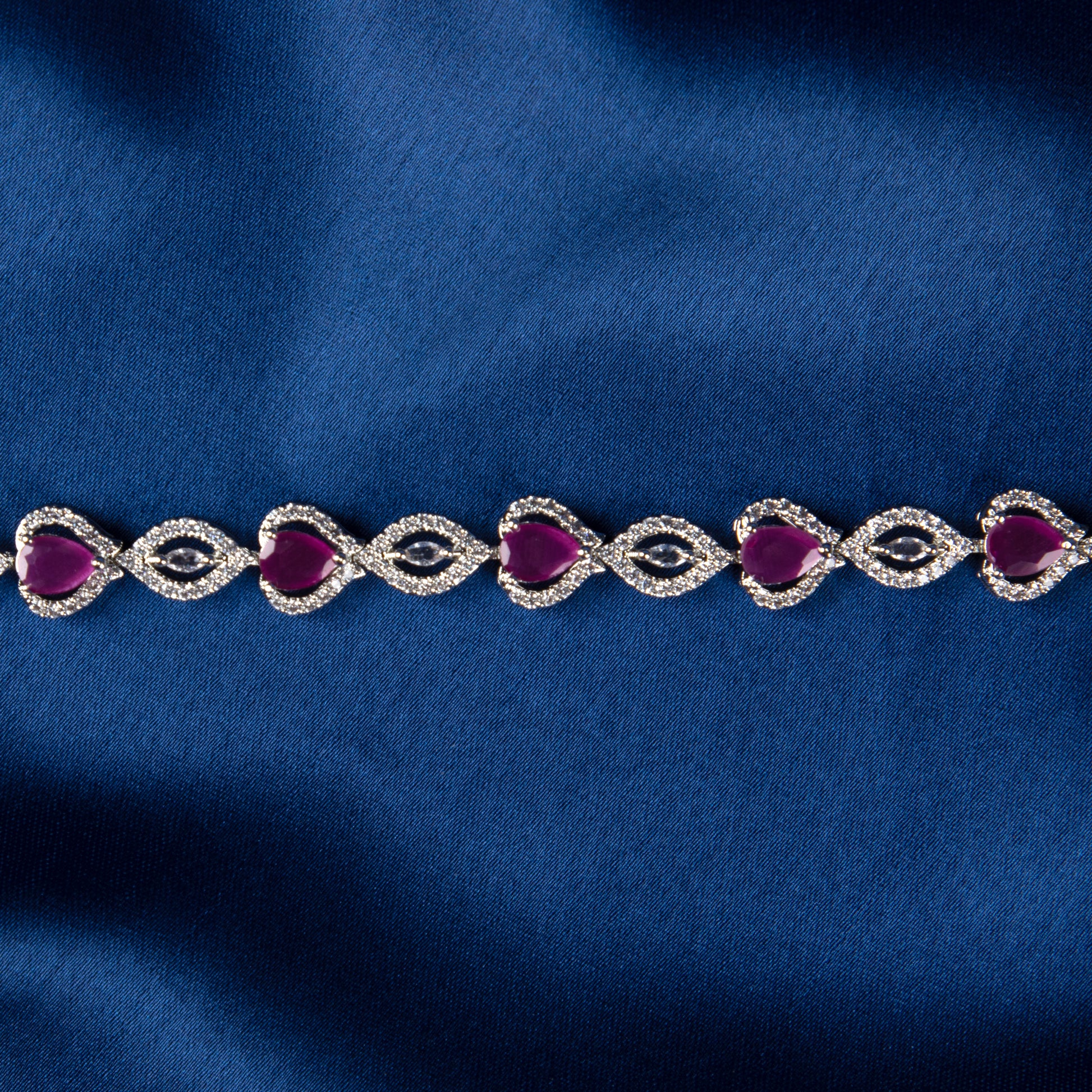 - Alternating teardrop emerald and crystal motifs for a graceful rhythm
