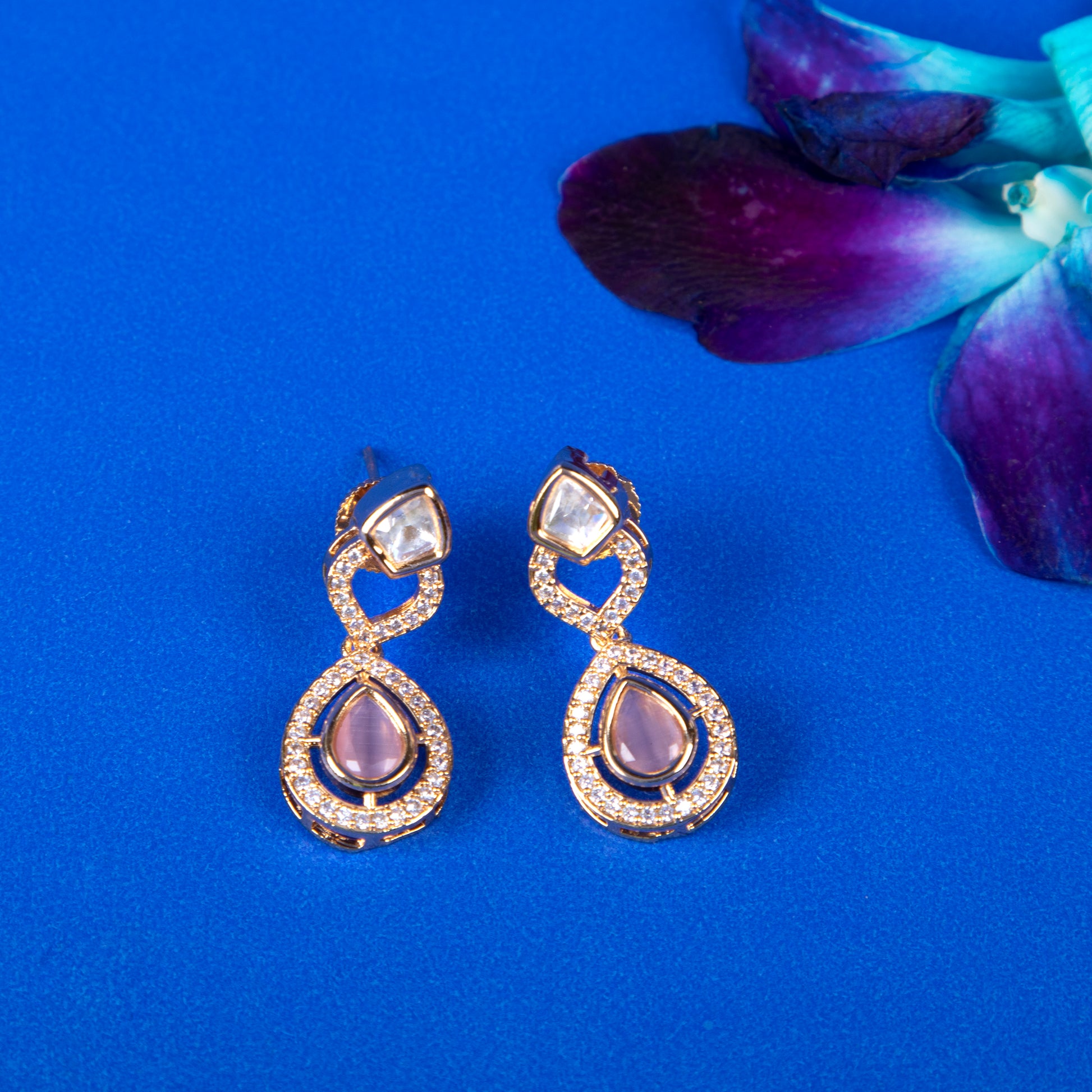 - Elegant double teardrop design with uncut-style polki stones at the center.