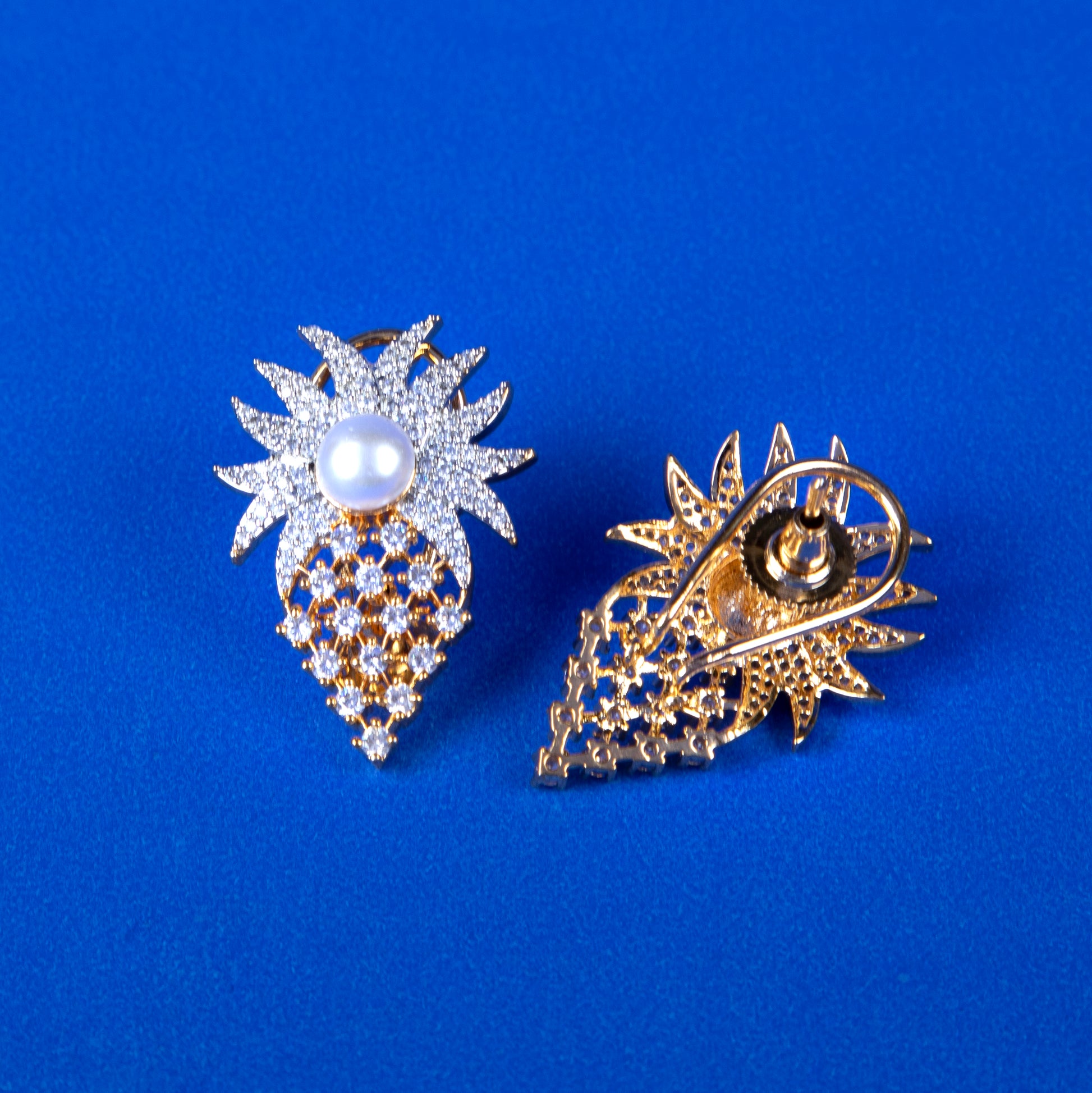 - A striking sunburst-inspired design crowned with a luminous central pearl.